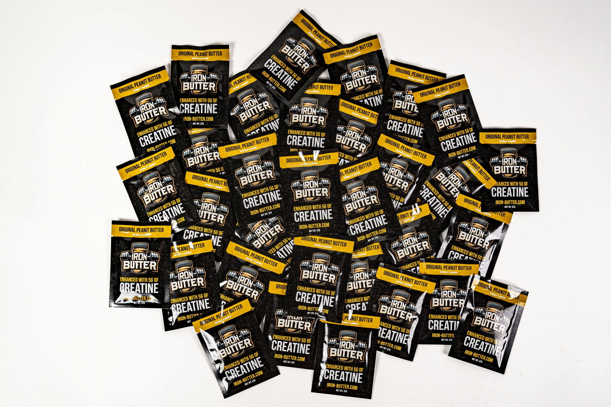 Take your training and nutrition to the next level with our Iron Butter Bulk Pack — available in convenient 10 or 30-pouch options. Each pouch blends the rich, creamy taste of classic peanut butter with a powerful 5g dose of creatine monohydrate to support muscle growth, strength, and recovery.